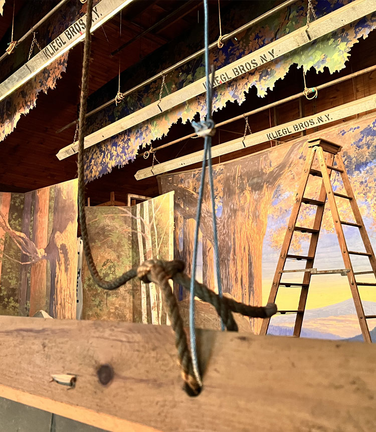 While estimates for all work to be done are still coming in, after the humidity is resolved (which will be costly with stone foundation repointing and repair, and additional measures for humidity reduction), the Maxfield Parrish Stage and the Set itself will need over $75,000 of preservation including the set, fire retardant proscenium curtains, electrical upgrades, and humidity control.